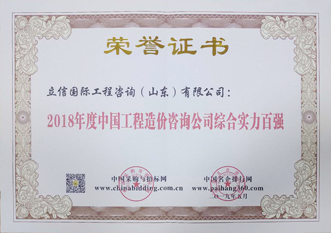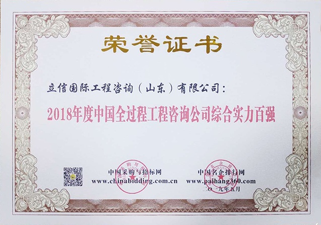 2019年5月,在“2019第13屆全國(guó)招投標(biāo)領(lǐng)域年度聚焦暨全過程工程咨詢機(jī)構(gòu)評(píng)價(jià)推介”活動(dòng)中,立信國(guó)際工程咨詢(山東)有限公司獲得如下榮譽(yù):