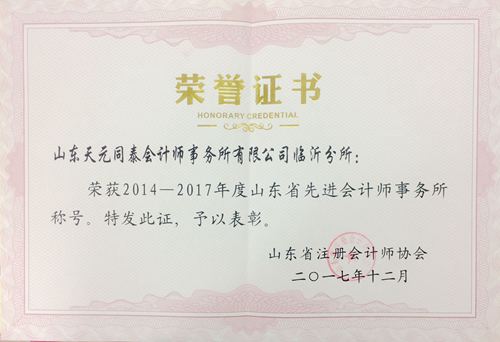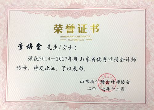 日前,山東省注冊會計師協(xié)會、山東省資產評估協(xié)會舉辦2014-2017年度山東省注冊會計師、資產評估行業(yè)先進典型評選。 我所獲得“2014-2017年度山東省先進會計師事務所”榮譽稱號,山東同泰資產評估有限公司獲得“2014-2017山東省先進資產評估機構”榮譽稱號。同時,李培堂獲得“2014-2017年度山東省優(yōu)秀注冊會計師”稱號,杜征宇獲得“2014-2017年度山東省優(yōu)秀資產評估師”稱號。