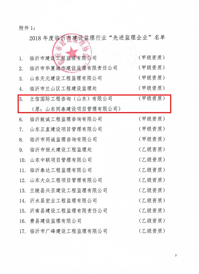 | 立信國際工程咨詢(山東)有限公司榮獲臨沂市建設(shè)監(jiān)理協(xié)會多項榮譽稱號 |