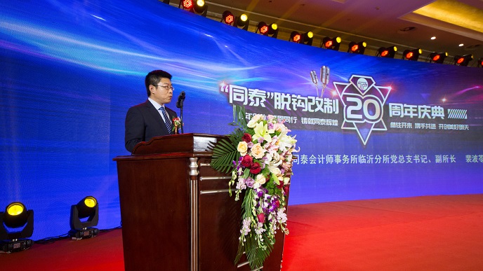 2019年12月21日,山東天元同泰會計師事務所臨沂分所在臨沂藍海國際飯店隆重舉行“同泰”脫鉤改制二十周年慶典。山東省注冊會計師協(xié)會韓群會長、省資產(chǎn)評估協(xié)會張煥平會長、省工程建設標準造價協(xié)會于振平秘書長和市行業(yè)黨委、市審計局、市住建局、市城鄉(xiāng)建設服務中心、市人防辦等有關(guān)部門的領(lǐng)導、特邀嘉賓以及“同泰”員工共400多人參加了慶典。 慶典活動由領(lǐng)導和嘉賓致辭、頒獎儀式、文藝演出三個環(huán)節(jié)組成。首先,山東天元同泰會計師事務所主任會計師、臨沂分所所長尹敬梅同志致辭。尹所長感謝各級各部門領(lǐng)導和社會各界對“同泰”的熱情關(guān)懷和鼎力相助,感恩每一位同泰人同舟共濟、艱苦創(chuàng)業(yè)所做出的貢獻,介紹了“同泰”二十年來的發(fā)展歷程,總結(jié)了取得的成就,為今后更好更快發(fā)展提出了希望和要求。 尹所長指出:1999年,臨沂審計師事務所實行“脫鉤改制”,成立了山東同泰會計師事務所。自此,“同泰”走向了市場,走出了一條創(chuàng)新發(fā)展的道路,取得了輝煌業(yè)績:2005年,同濟南“山東天元會計師事務所”實現(xiàn)了“強強聯(lián)合”,2006年躋身于“全國百強”之列。從業(yè)人員從脫鉤改制之初的34人,到今天擁有350人的專業(yè)團隊;業(yè)務收入從最初的200多萬元到突破1個億;辦公場所由不足800平米到擁有4500平米位于行政中心區(qū)域的IEC高端寫字樓;市場拓展從臨沂本地到覆蓋山東,再擴展到北京、重慶、四川、河南、河北、江蘇、內(nèi)蒙古等全國多個省市;業(yè)務領(lǐng)域在傳統(tǒng)業(yè)務的基礎(chǔ)上實現(xiàn)了向高端、創(chuàng)新項目的轉(zhuǎn)變;2019年,同上?!傲⑿拧痹诟訌V泛的領(lǐng)域里實現(xiàn)了更加深入的合作?!傲⑿艊H工程咨詢(山東)有限公司”的成立,為同泰發(fā)展壯大又增加了強大驅(qū)動力。目前,“同泰”已成為旗下?lián)碛形鍌€獨立法人資格、集團化經(jīng)營的大型綜合性管理咨詢機構(gòu),贏得了廣泛的社會信譽。 在長期的實踐中,“同泰”堅持“創(chuàng)新發(fā)展”的理念,在為經(jīng)濟社會服務中不斷發(fā)展壯大,形成了“根植沂蒙、面向全國,開拓創(chuàng)新、做大做強,奉獻社會、成就員工”的整體發(fā)展戰(zhàn)略和目標,創(chuàng)建了有特色的“同泰文化”,錘煉出“拼搏、創(chuàng)新、團結(jié)、奉獻”的“同泰精神”,打造出了具有廣泛社會信譽的“同泰品牌”,為今后發(fā)展創(chuàng)造了有利條件。 尹所長號召,全體同泰人攜起手來,不忘初心、牢記使命,砥礪前行,用自己的智慧與汗水,再創(chuàng)造“同泰”下一個二十年輝煌,迎接更加燦爛美好的明天! 韓群會長、于振平秘書長、市行業(yè)黨委和市審計局領(lǐng)導分別發(fā)表了熱情洋溢地講話。他們充分肯定了“同泰”二十年奮斗取得的成就,同時為今后的發(fā)展指明了方向、提出了殷切希望和要求,使全體同泰人倍受鼓舞。慶典還對二十年來為“同泰”發(fā)展做出突出貢獻的30名先進模范人物及“我們走過二十年”主題演講比賽獲獎人員代表進行了表彰。 文藝演出精彩紛呈。這臺全部由同泰員工自編自導自演的節(jié)目無疑是一場視聽盛宴,令人感動與震撼。同泰人用歌舞、器樂、詩朗誦、武術(shù)、相聲等文藝形式詮釋著對黨、對祖國、對同泰的愛,傾情演出、真摯感人。演出在全體與會人員《歌唱祖國》的嘹亮歌聲中達到了高潮并圓滿結(jié)束。
