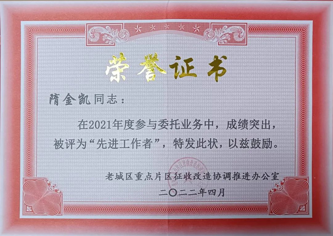 | 創(chuàng)優(yōu)爭先、干事創(chuàng)業(yè)--我集團張森等8名同志被市老城區(qū)推進辦授予“先進工作者”稱號 |